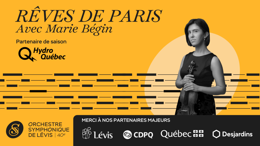Plongez dans l'élégance et la magie de « Rêves de Paris », un concert exceptionnel qui vous transportera au cœur de la capitale française à travers deux œuvres magistrales. Avec la brillante Symphonie espagnole d'Édouard Lalo, la talentueuse violoniste Marie Bégin saura vos captiver par son jeu passionné et virtuose, rendant hommage à la fusion des rythmes espagnols et de la sophistication parisienne.